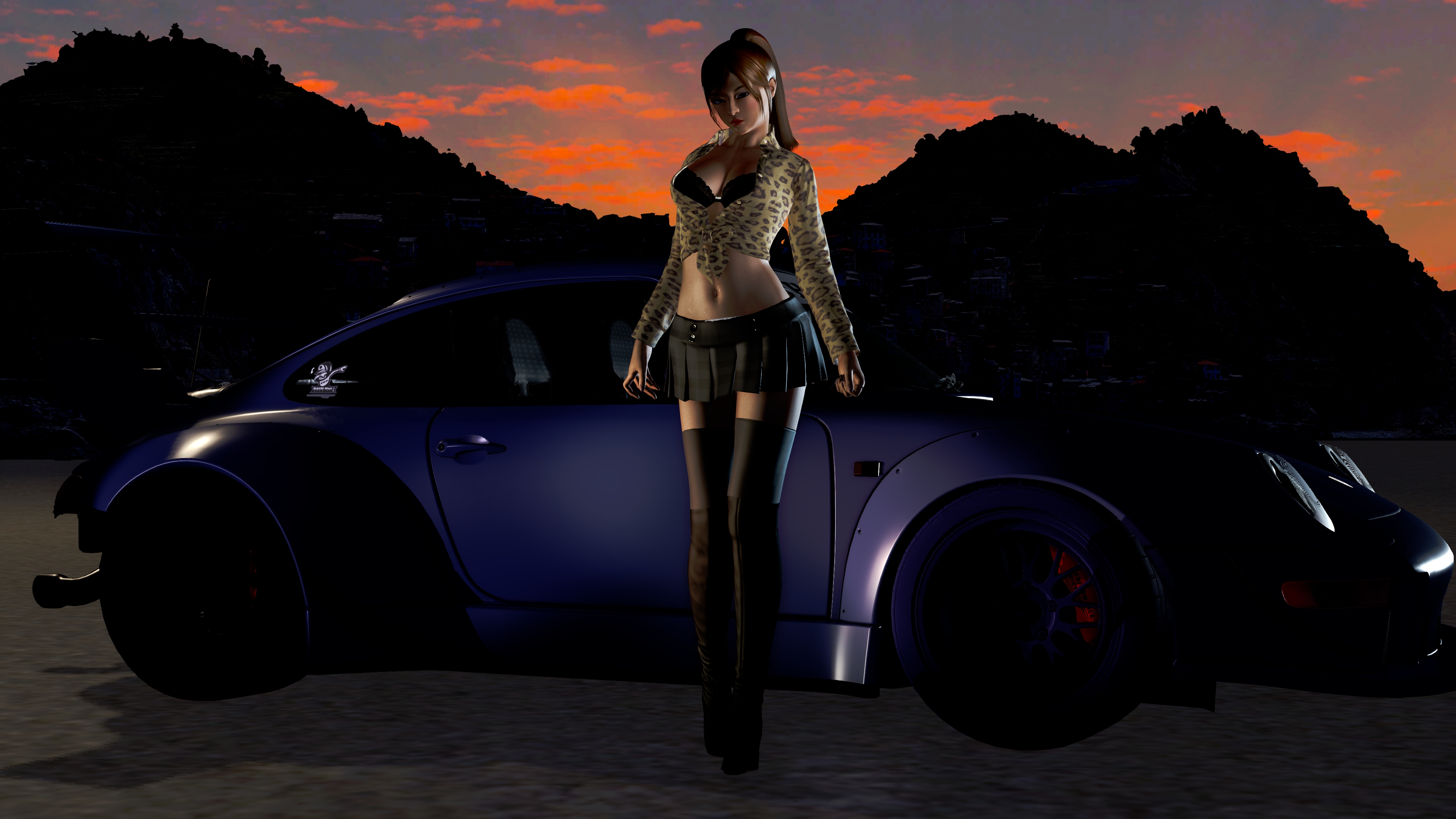 leaning against car